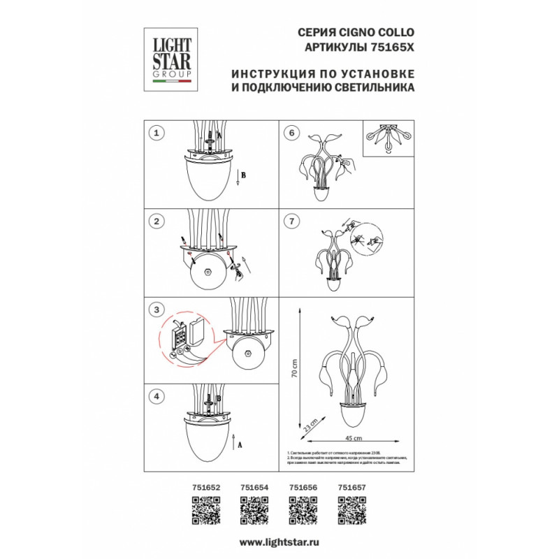 Бра Lightstar Cigno Collo Ch 751654