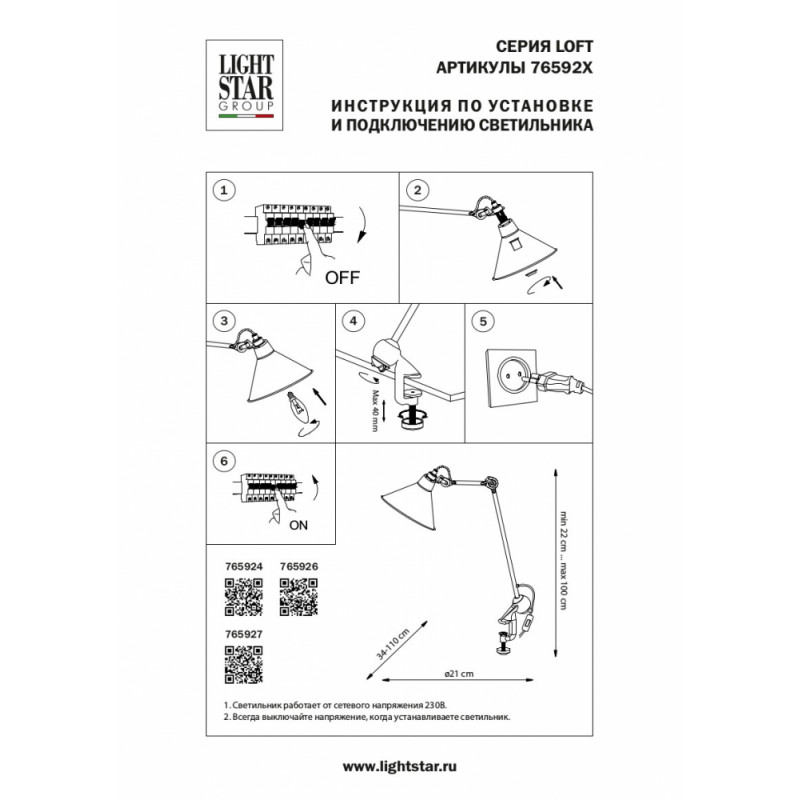 - Мощность лампы, W:40