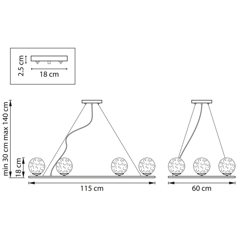 - Регулируемая высота подвеса:1100