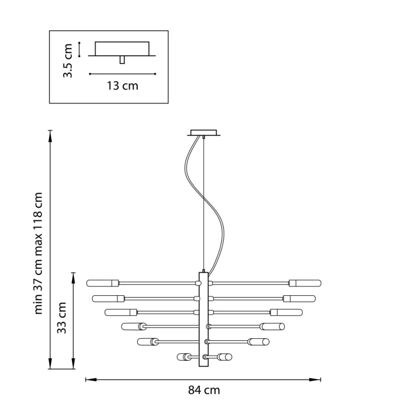 - Регулируемая высота подвеса:840