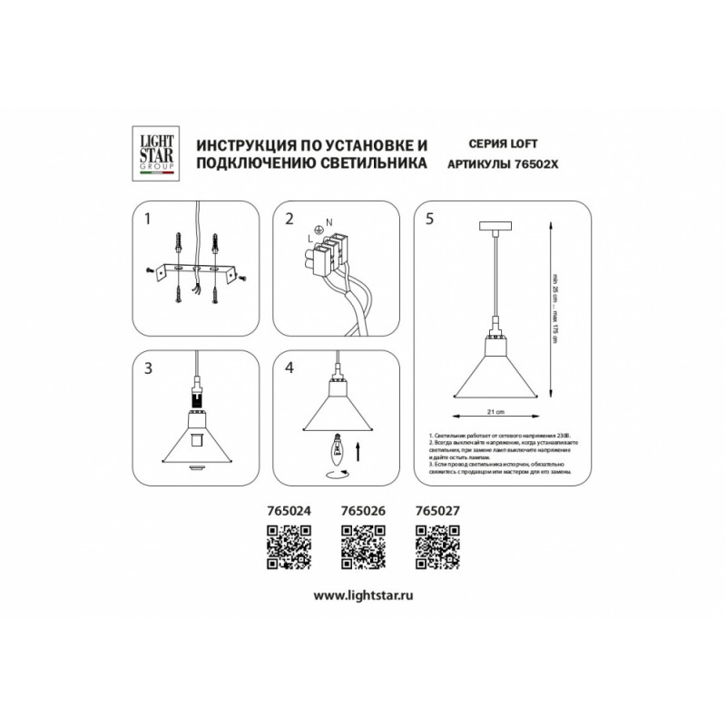 - Форма плафона:Конус