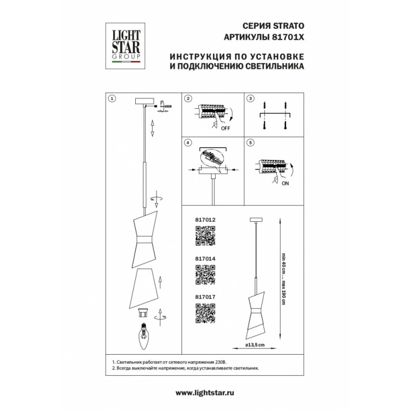 - Напряжение, V:230