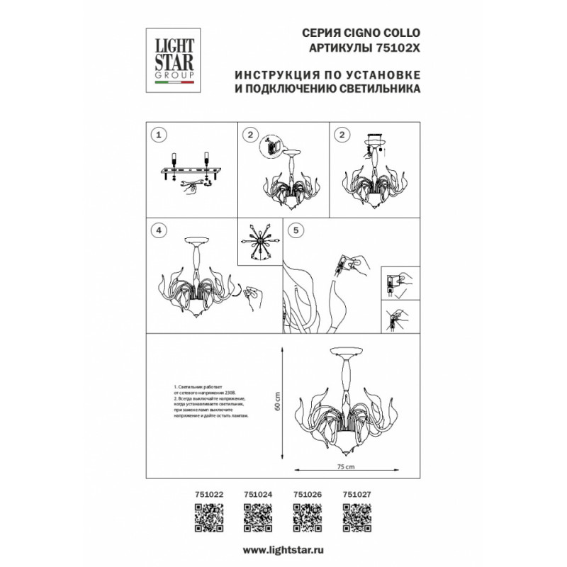 Потолочная люстра Lightstar Cigno Collo Ch 751024