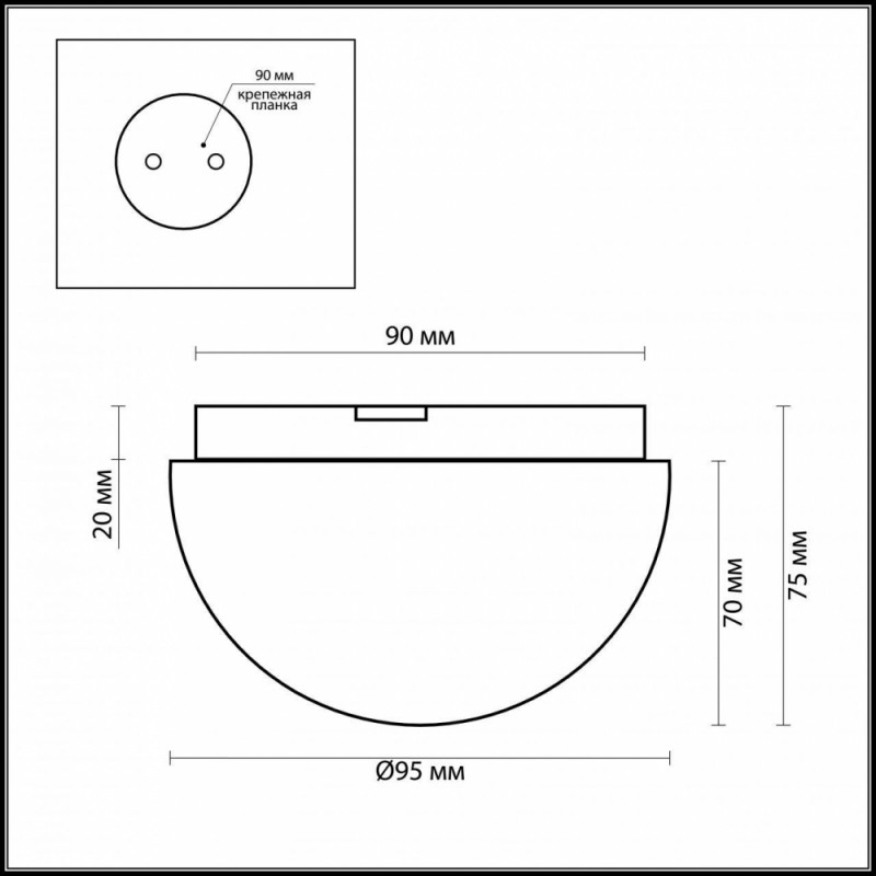 - Форма плафона:Полукруглый