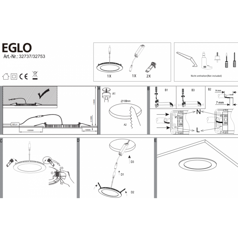 - Диаметр врезного отверстия, мм:108